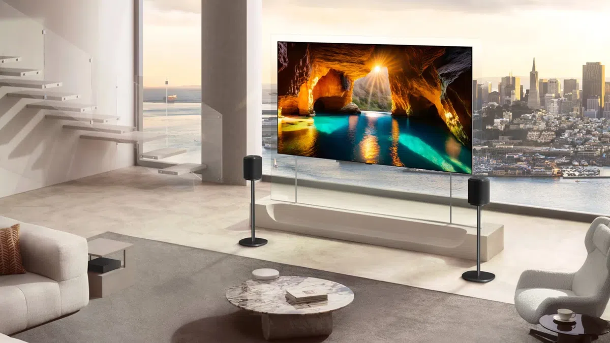 De LG G-reeks is al jaren populair vanwege zijn strakke wandmontage, maar de Wallpaper gaat nog een stap verder – en dat maakt hem meteen ook een nicheproduct. Je koopt deze tv niet om op een tv-meubel te zetten, tenzij het de speciale dunne design-pootjes zijn die LG onder zijn tv zet. Het toestel komt in 77 en 83 inch, heeft echt een vrije muur nodig, en vraagt om een inrichting waarin hij opgaat. Net als de andere dure tv’s van LG lijkt ook dit toestel voornamelijk gemaakt voor mensen in penthouses, villa’s of andere interieurs onder ontwerp waar een ordinaire tv zou misstaan.
