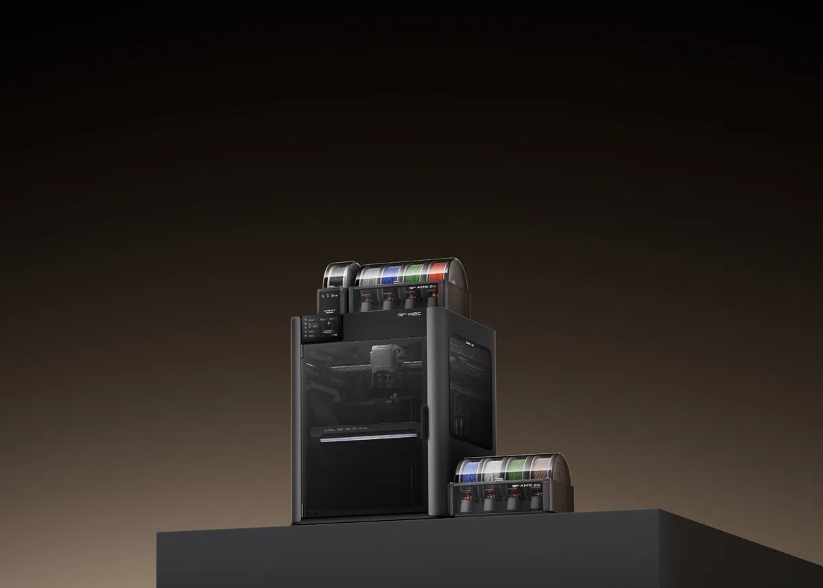 Bambu Lab heeft een indrukwekkende line-up aan printers die ze ook nog eens met een razend tempo vernieuwen. In de grote H2 serie is nu de meest indrukwekkende variant te koop: de H2C met 6 verwisselbare printkoppen.