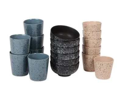 Het servies speelt perfect in op de enorme trend van keramiek met een natuurlijke uitstraling. We willen geen saai wit porselein meer maar borden en kommen die karakter tonen. De set kenmerkt zich door een speels spikkelpatroon dat doet denken aan het kostbare steengoed dat je in hippe koffietentjes ziet. Wat deze set extra leuk maakt is de combinatie van kleuren. Je krijgt namelijk niet één saaie kleur maar een mix. De set bevat items in een stoere donkere tint en een frisse lichte kleur. Dit zorgt ervoor dat je tafel er direct levendig en speels uitziet. Het lijkt alsof je jarenlang hebt gezocht naar unieke stuks op Franse brocantemarkten terwijl je ze in werkelijkheid met één druk op de knop hebt besteld.