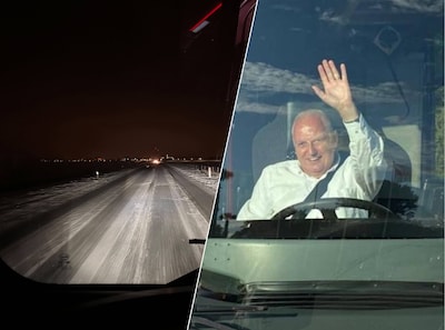 Als chauffeur Wout van Veen (66) uit Ermelo in zijn lege bus zondagavond op de dijk bij Zeewolde rijdt, bedenkt hij zich geen moment als hij twee in de sneeuw gestrande fietsers ziet. „Ik kreeg een ongelooflijke handdruk.”