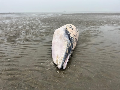 Een dwergvinvis zie je niet elke dag op het strand liggen. Maandagochtend spoelde er een aan op het zand bij de Kaloot in het havengebied bij Borssele. „Zijn staart is waarschijnlijk in een schroef van een schip terechtgekomen”, zegt zeezoogdierenexpert Jaap van der Hiele.